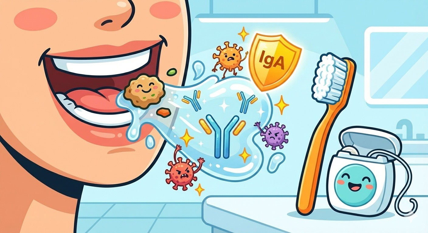 唾液には、ウイルスを撃退する「IgA抗体」という成分が含まれています。一口30回を目標によく噛むことで唾液が増え、お口の中のバリア機能が劇的にアップします。