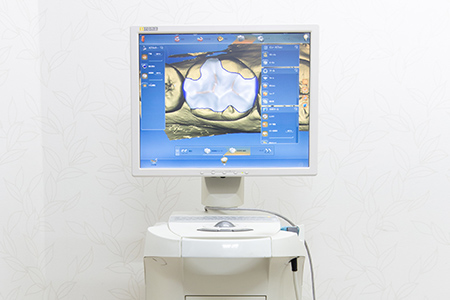 口腔内光学スキャナー、CAD/CAM使用(セレック)でセラミックの詰め物・被せ物を自動で設計・作製するシステムを導入しています。セラミック作製は院内で、歯科技工士のスタッフと連携して行います。セレック症例数年間300本以上。セラミック症例数は600本以上とセラミック治療、審美治療を多数行っています。