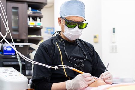 院長は歯周病認定医で、歯周病治療にも力を入れています。当院はNd-YAGレーザーを導入し、それを歯周病治療にも用いています。LANAPは中等度から重度の歯周疾患を治療するために設計された包括的な再生アプローチです。歯周ポケットがかなり深くなっている、既往歴により外科治療ができないかたにメスを使わずに歯周ポケット内の細菌をレーザーを用いて殺菌します。