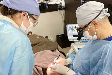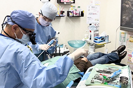 患者さんの口腔内を最後まで治しきるために外科処置はとても重要です。当院ではフラップオペなどの歯周外科処置や歯根端切除術などを行っています。これらの外科処置はしないに越したことはないため、症例数はそれほど多くはなく、あっても月間1症例あるかないかです。しかし、抜歯をせず歯を守るために外科処置が必要な場合は速やかに行い、歯周病治療、根管治療の成功率を高めています。
