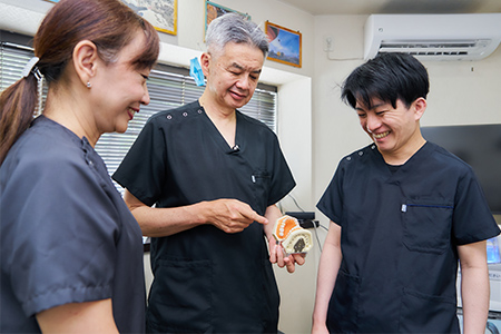 できるだけ長く、歯科医療の現場に立ち続けたいという気持ちが強いです。無理をせず、自分のペースで診療を続けていきたいですね。これから入ってくる先生たちにとって、相談しやすい先輩でありたいとも思っています。指導に関しては基本的に院長が担当していますが、質問されたときにはできる限り丁寧に答えるようにしていますし、診療以外の不安や悩みなども気軽に相談してもらえたらうれしいです。