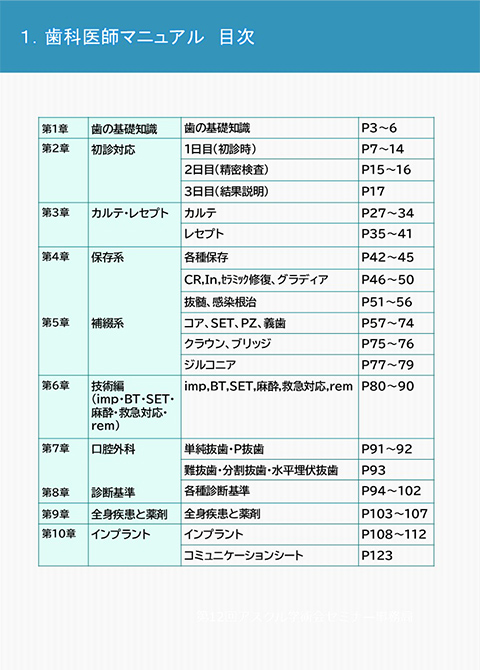 • 勤務時間内で保険治療全般をGPアカデミー(歯冠修復・歯内療法コース)で学び、また医院オリジナルマニュアルを使用して、治療の術式を学びます。